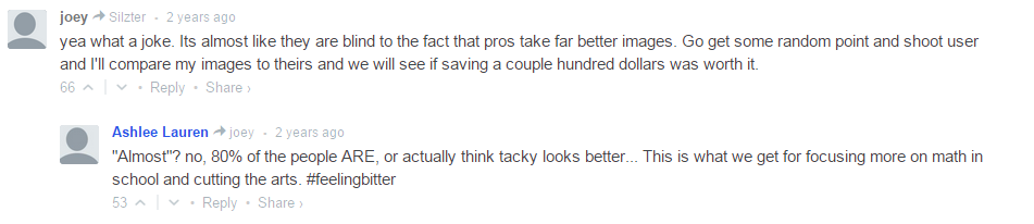 Those who cannot be reached by the strong arm of the state are belittled. Professional photographers mock photos that people did not pay hundreds of dollars to procure. Sure, some self-labeled photographers are subjectively terrible, but my experience is that consumers tend to love their terrible photos. I have seen them on walls and office desks and in wallets. I smile and nod, “Color popping. Oh, very nice.” The really funny thing is that for all the smugness of the photographer community that they are bested by cheap amateurish images. And this is not even mentioning that many amateurs take high quality photos.